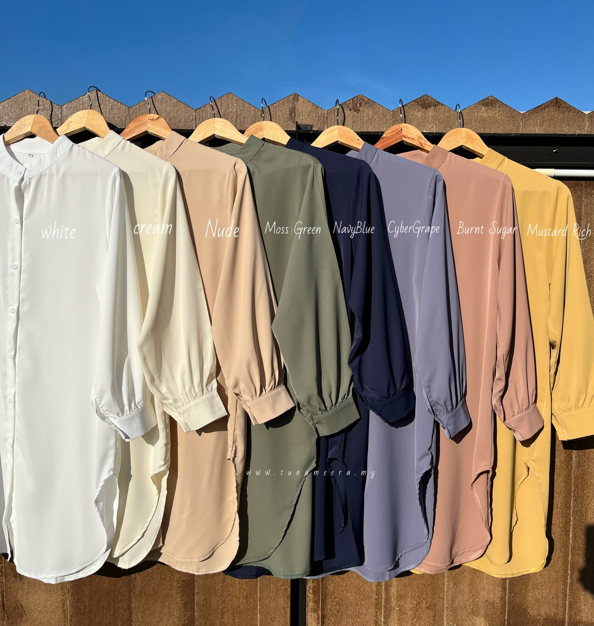 Baju labuh paras lutut. buat ketinggian 150cm hingga 163cm sangatlah sesuai! . Dengan potongan ‘anti’ nampak bentuk pinggang. Menggunakan fabrik mulbery silk . Selesa & 100% menyerap peluh. fabrik mewah dengan effek matte satin silk.