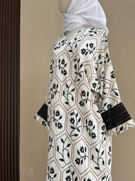 – Bahagian bawah abaya dengan kemasan scallop sulam yang menyerlah dan feminin